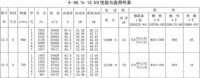 風機傳動方式有A、B、C、D四種。2.8~5號采用A型傳動,6.3~12.5采用C、D型傳動,16、20號采用D型傳動。